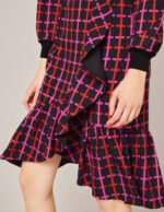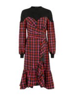 Be the first to review “MARYLING CONTRAST KNIT SPLICED CHECKED PRINT RUFFLE DRESS”