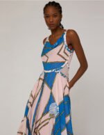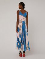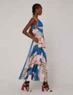 MARYLING DRAPE NECK BRAID GEORGETTE PRINT MAXI-DRESS