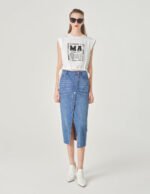 The highlight of the design of MARYLING’s T-shirt is the sequin embroidered LOGO. which is cleverly arranged with black and silver letters to form a visually charming pattern. Drawstrings are used on both sides to pay attention to the details. giving it a fashionable and youthful atmosphere.