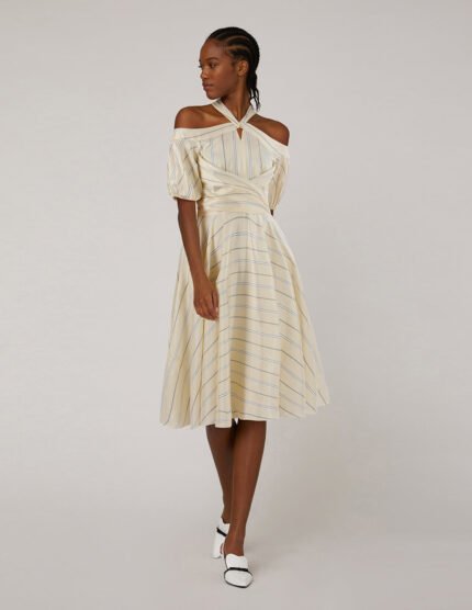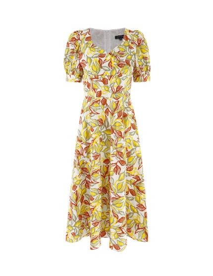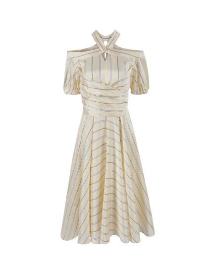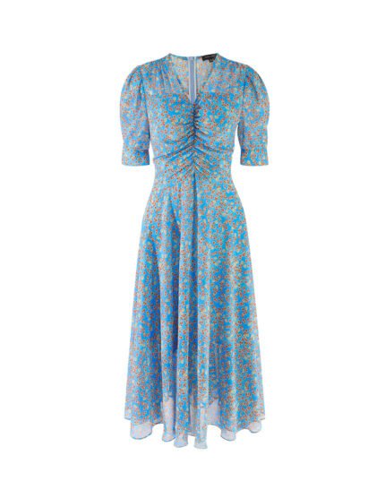 The big V-neck and the ruffled sleeves extend to the hem are atmospheric and full of temperament.