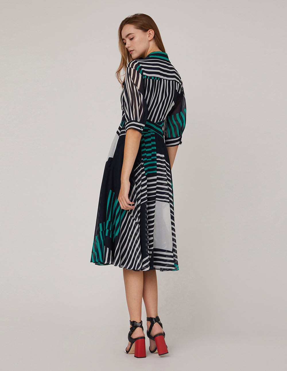 MARYLING V-NECK STRIPE SHIRT DRESS