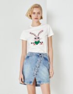MARYLING’s short-sleeved T-shirt uses a playful and cute pattern of long-eared rabbits. The pattern combines a variety of printing and embroidery techniques. It is casual and individual. full of summer sweetness.